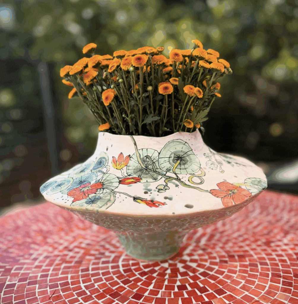 Spend a few hours learning the ins and outs of creating gorgeous, free flowing painted color surfaces on your vessels. Kim has been experimenting and learning about these versatile materials for two years now and she’ll share her tips and techniques. The workshop will include a step-by-step demonstration, discussion about materials and equipment, order of operations and the pitfalls to avoid. Students will need to supply a few light clay, or slip covered bisque fired pieces of their own to decorate. If you have a design or theme you’ve been itching to try, bring it along for inspiration.If not, Kim will have plenty of examples to share.
